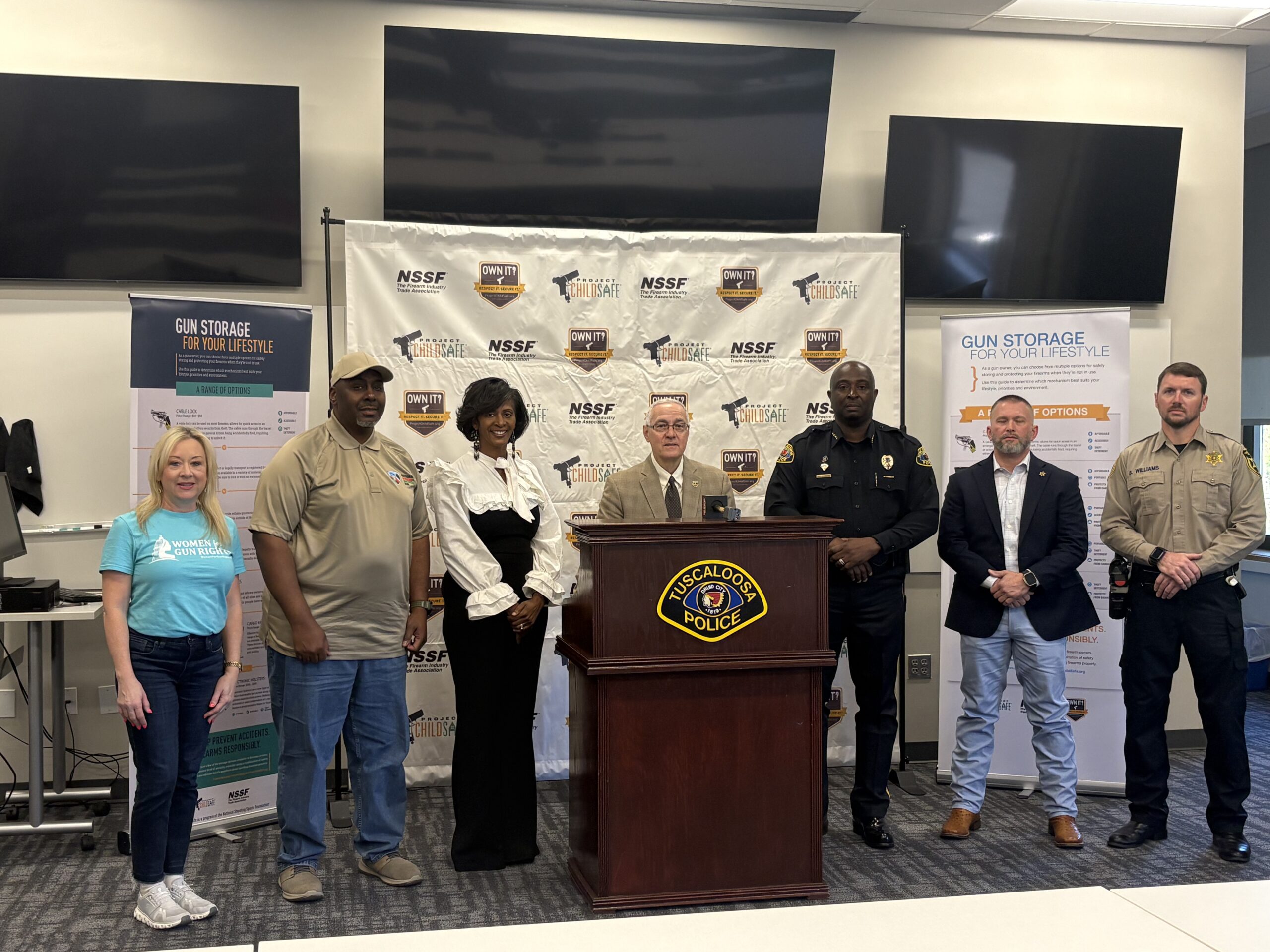 During a press conference at the Tuscaloosa Police Department Headquarters, officials and community members from across Tuscaloosa gathered to emphasize the importance of simple, everyday actions gun owners can take to help prevent firearm-related accidents, thefts and suicides. In addition to the press conference, Tuscaloosa Police Department and the Tuscaloosa County Sheriff’s Office are hosting two gun lock distribution events, allowing Tuscaloosa residents to pick up free Project ChildSafe cable gun locks, no questions asked, and safety literature.